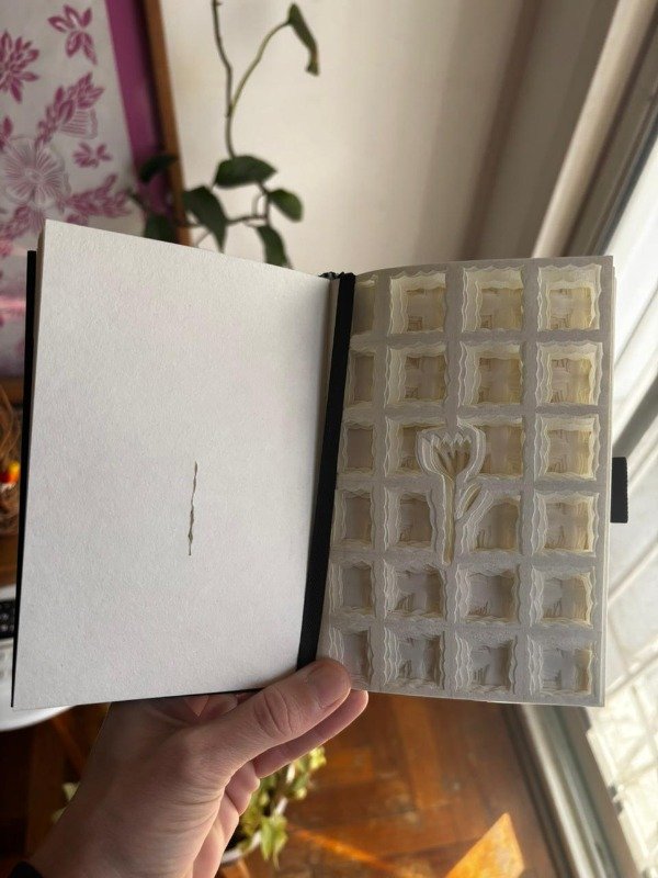 Libro calado a mano mas papel vegetal.