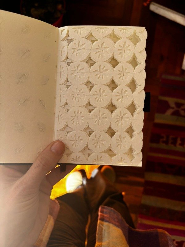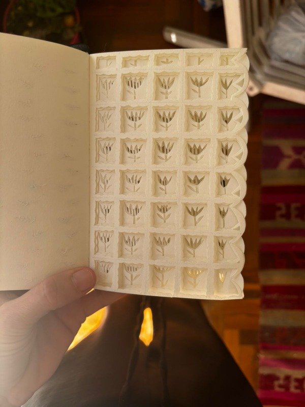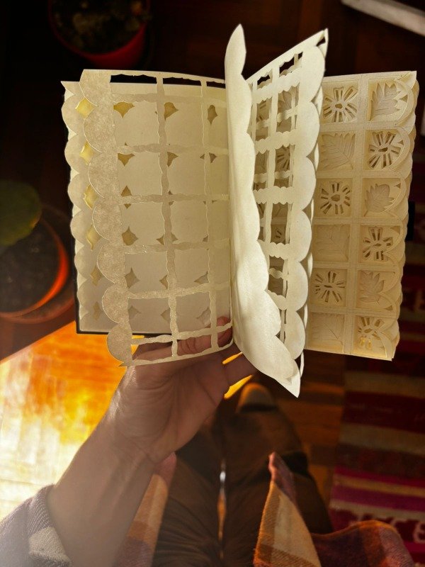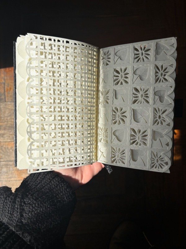 Libro calado a mano. Poner la mesa es la invitacion a comer. Un mantel puede ser el fondo de un lienzo.