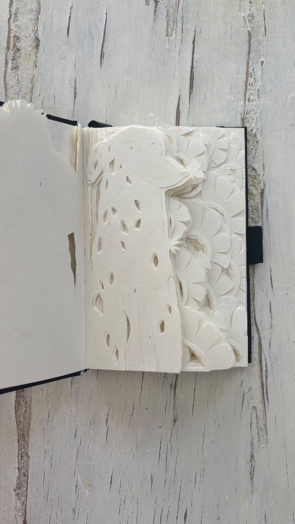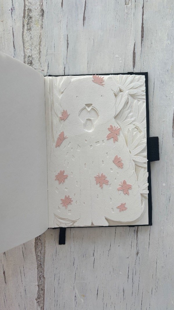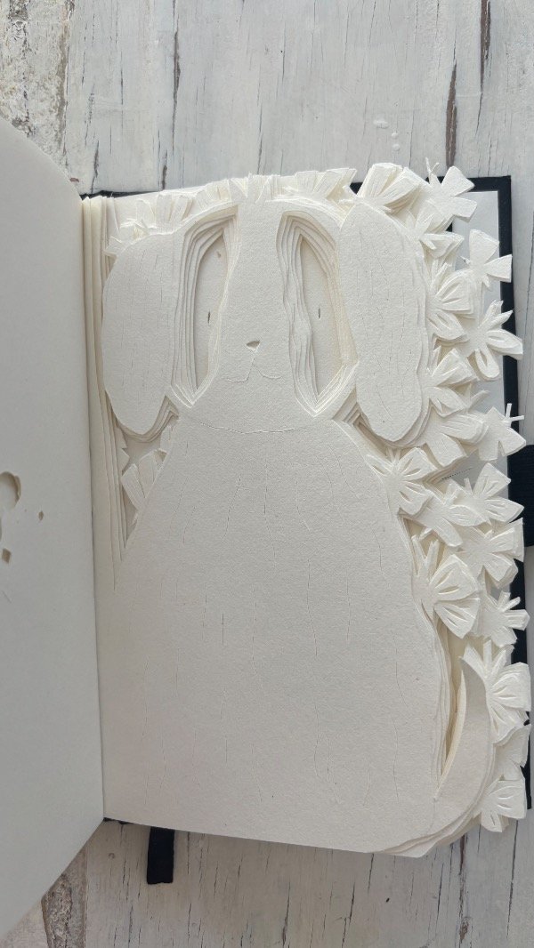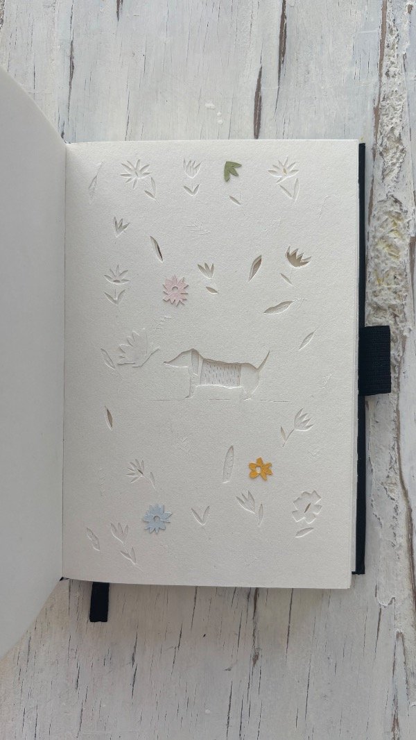 Libro calado a mano. Un libro lleno de perro,flores libélulas.